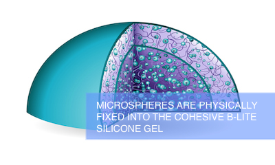 Dentro de la cubierta se usa el “B-lite gel”, un gel de muy alta cohesividad, con forma estable, por lo que si se ve comprometida la cubierta del gel B-Lite no fluye hacia el exterior. Las microesferas están fijas y no se mueven por dentro del gel.