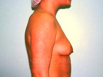 Mamas tuberosas. Mamas tuberosas moderadas (grado II). Se practicó mastopexia periareolar, reducción de areolas, cortes radiales glandulares e implantación a nivel submuscular de prótesis de 350 cc, redondas, texturadas, perfil alto. Post-operatorio a los 6 meses.