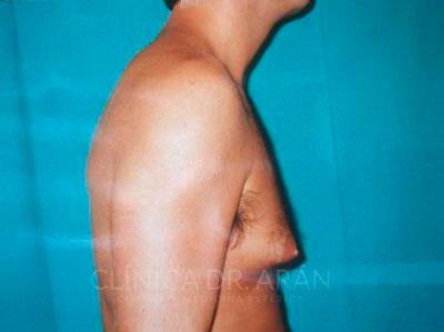 Ginecomastia Hombre con leve exceso de crecimiento mamario. Se practicó liposucción y exéresis parcial de tejido glandular (mastectomia subcutánea).