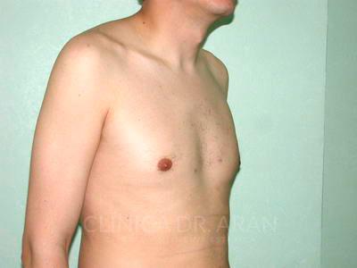 Ginecomastia Hombre con leve exceso de crecimiento mamario. Se practicó liposucción y exéresis parcial de tejido glandular (mastectomia subcutánea).