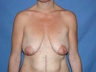 Mastopexia: Mamas con caída importante (ptosis grado 3). Se practicó mastopexia (elevación) según técnica de cicatriz en T invertida. Post-operatorio a los 3 meses.